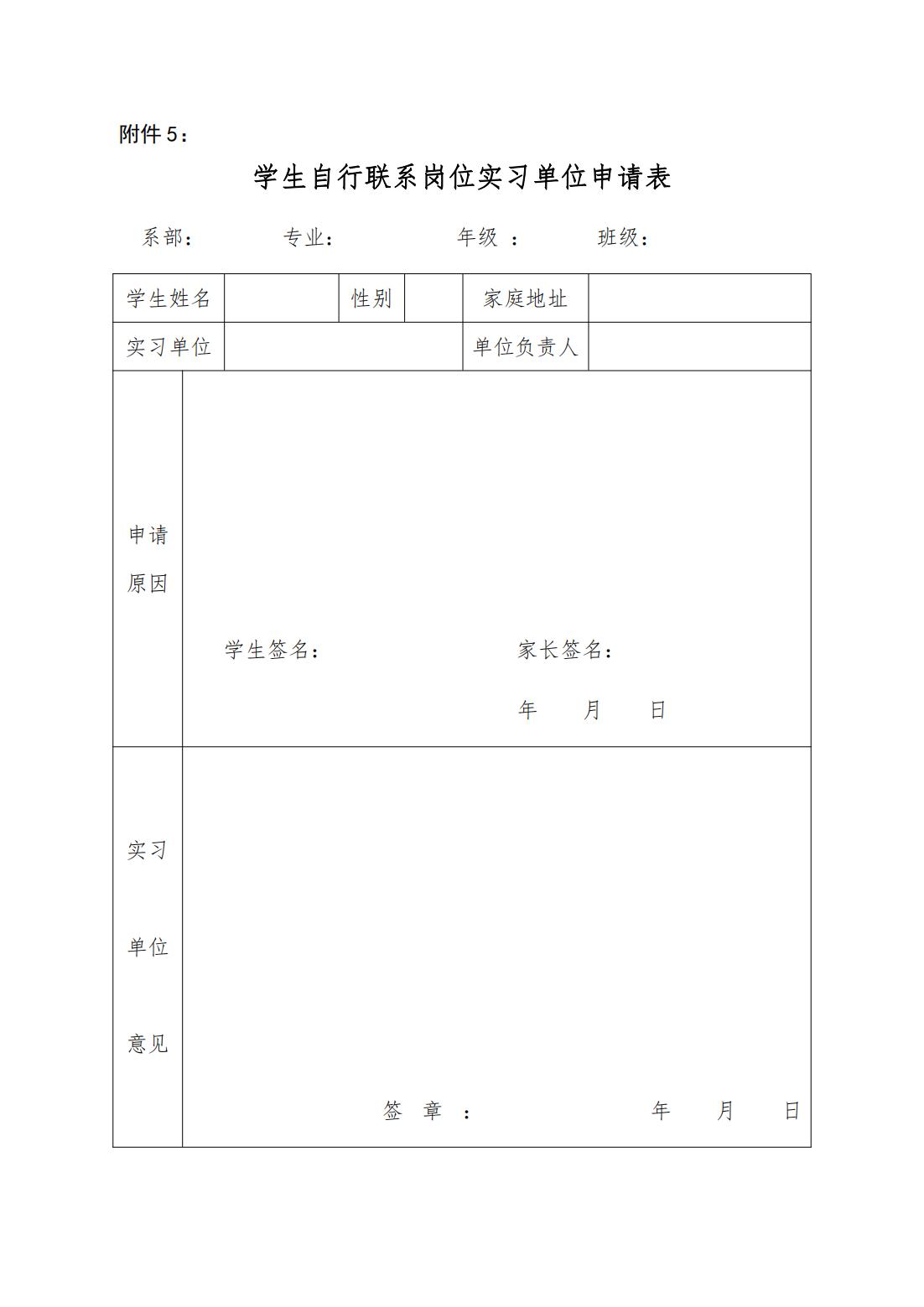 4.学生自行联系岗位实习单位申请表(附件3)