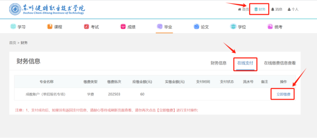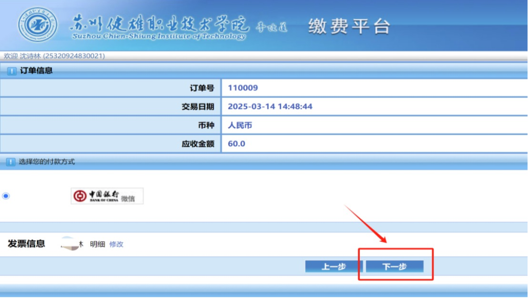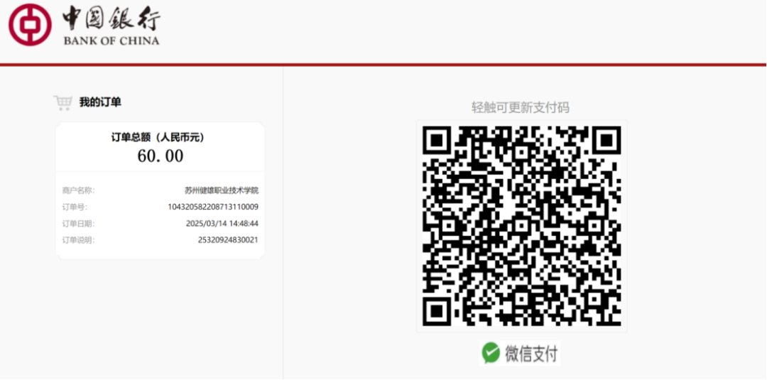 感谢报考苏州健雄职业技术学院,根据《苏州健雄职业技术学院2025年高职提前招生章程》相关内容,对符合我院报考资格的考生,收取校测费用60元/生,体艺特长生加试费60元/生。缴费说明如下:一、缴费时间2025年3月17日至20日,全天均可缴费二、缴费流程①登录缴费平台网址:https://jxcj.sccchina.net/app/用户名:考生号(如遗忘考生号请查询本人提前招生志愿填报信息)密码:身份证后六位