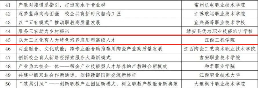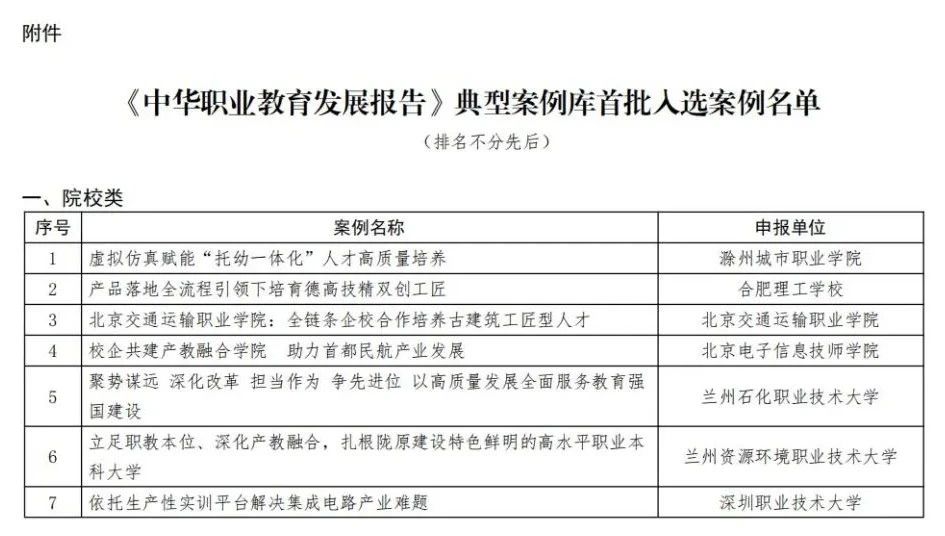 12月17日,中华职业教育社公布了《中华职业教育发展报告》典型案例库首批入选案例名单(全国首批总共89个典型院校案例),我校报送的《以天工文化育人为特色培养应用型高级人才》成功入选。