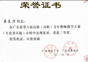 本专业团队教师积极参加广东省职业院校技能大赛教学能力比赛和广东省高校青年教师教学能力大赛,大大提升了教师教学业务能力水平。近3年来,本专业教师参加省级教学能力比赛共获得二等奖2项、三等奖2项。