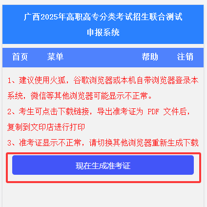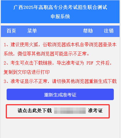 打印准考证时间:3月20日9:00-3月23日9:00登录方式一:手机扫码关注“广西高校联盟信息网”微信公众号,点击下方菜单“准考证”→“准考证打印入口”。
