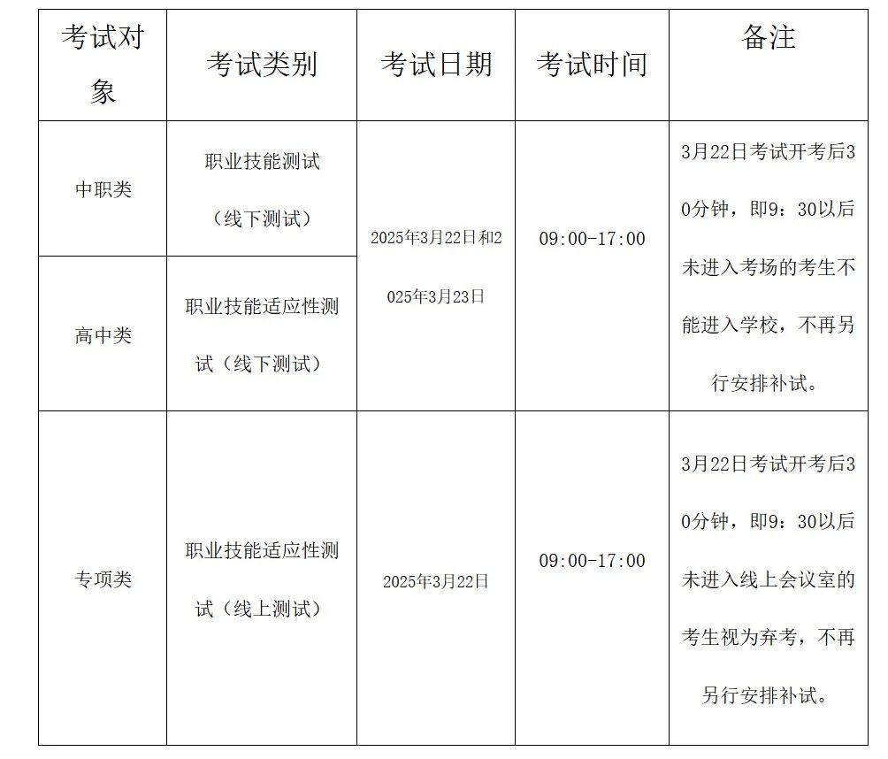 专项类考生:职业技能适应性测试采取线上面试的方式进行