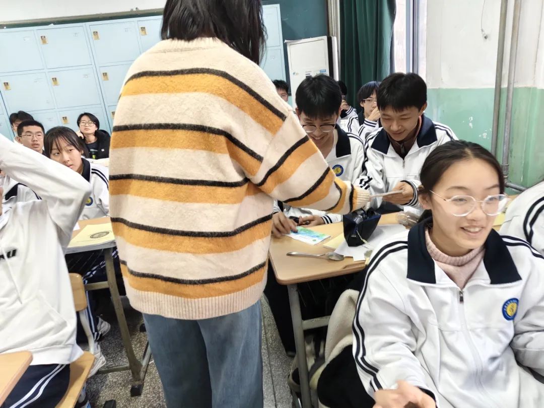 在互动环节,同学们纷纷举手提问,有的询问天中大学专业的选择,有的好奇大学生活与高中的不同。我们将有关天中的资料分发给同学们并耐心解答了他们的问题,告诉他们要结合兴趣和未来职业规划选择专业,进入大学后会拥有更多自主时间,要学会自律和独立。看到他们认真记录的模样,我们仿佛看到了曾经的自己。
