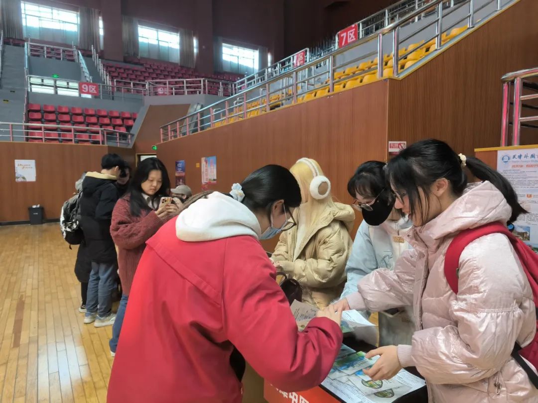 下午,我们的团队在县一中的体育馆内参与了由湘潭县一中校方集体组织的寒假高校招生宣传社会实践活动并进行摆摊,与更多的学弟学妹交流了相关专业选择问题,并展示了天津中医药大学几大特色专业的分数线、排名情况、选考科目限制以及就业前景等信息,本次回访活动在全体团队成员以及县一中全体师生的共同努力下取得了圆满成功。