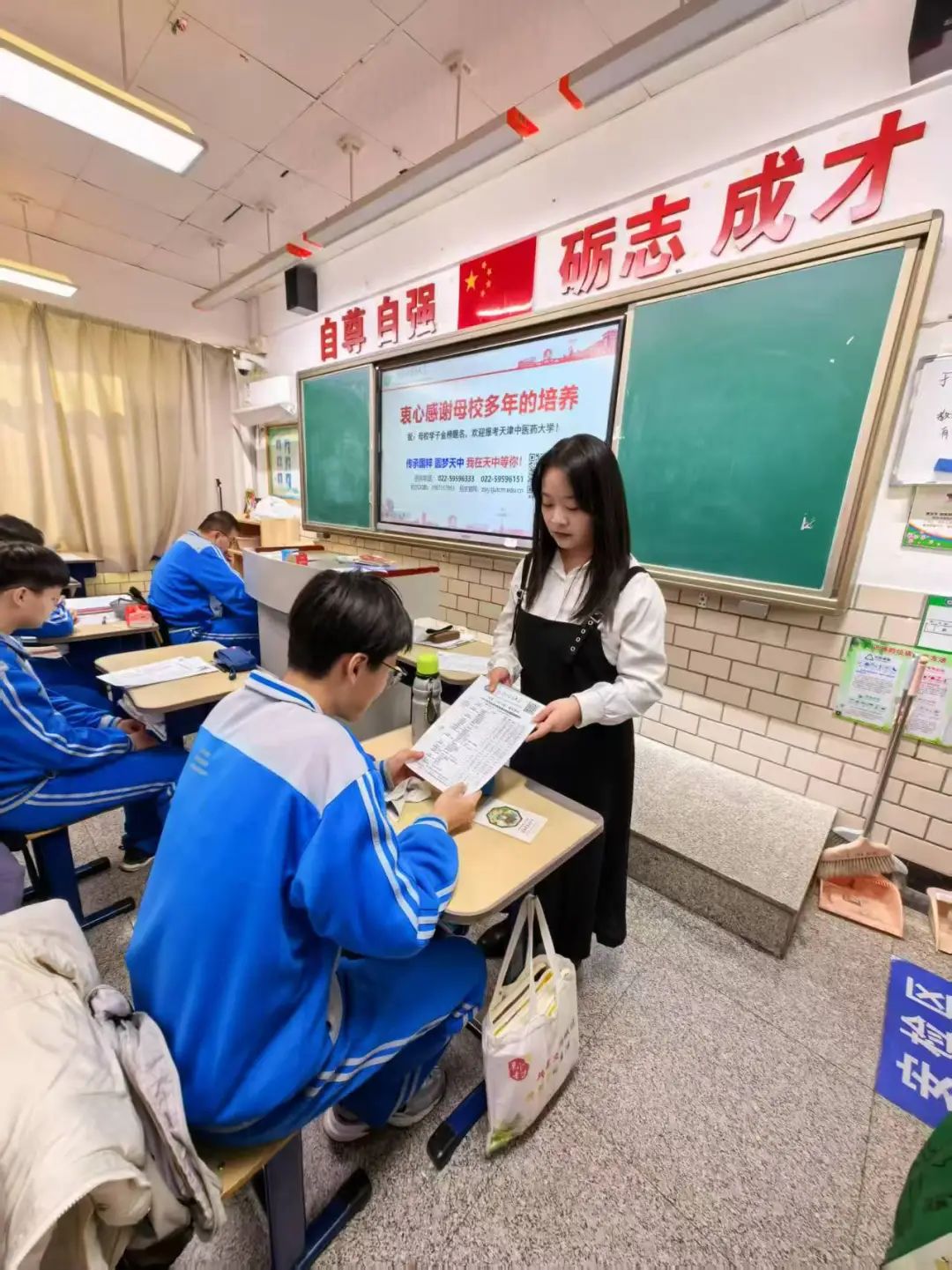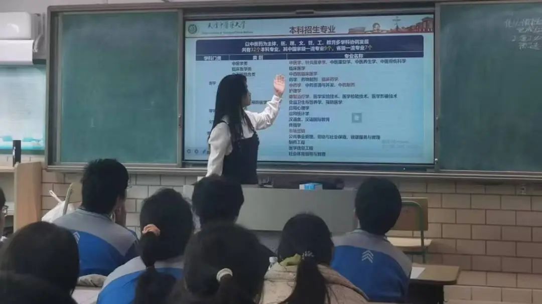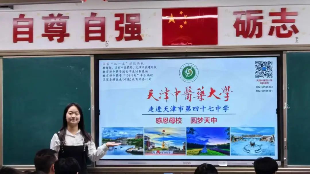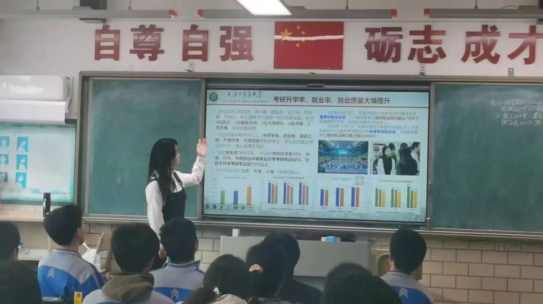 2、通过宣讲的机会,我们进入到昔日的教室,向母校的学弟学妹们介绍了我们天津中医药大学的相关内容,向他们展现出我们学校的特色以及优势,并提供相关录取资料,帮助学弟学妹们在报考大学的过程中更加清楚地知道自己的定位和报考方向。通过这次宣讲,学弟学妹们更加了解天津中医药大学,对校园的文化和环境也有了深入的了解。