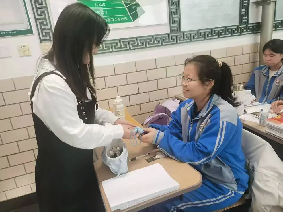 宣讲结束后,学弟学妹们给予我们热烈的掌声,我们也分享了高考经验并进行互动环节。结合自己的高考备考经历,为学弟学妹们传授经验,帮助他们更好地备战高考,并为学弟学妹们分发天津中医药大学特色文创礼物和宣传册及自行准备的学习用品等相关礼物,并祝福学弟学妹们。
