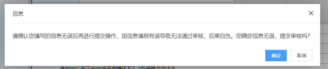 输入姓名和身份证号验证信息后,点击确定按钮,提交后系统提示。