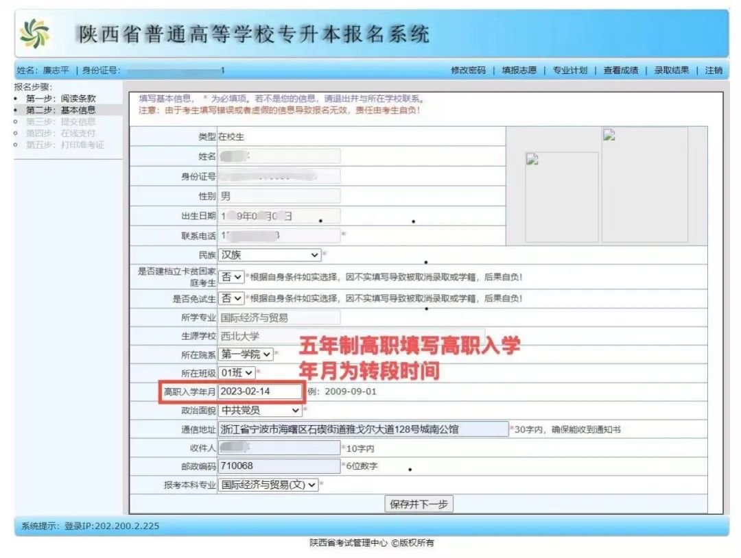 考生依次填写页面所列基本信息项、点击“保存并下一步”按钮,完成基本信息填写。注意:注册后系统会自动校验毕业生信息,获取考生的毕业院校和所学专业,所以这两项信息不需要填写。