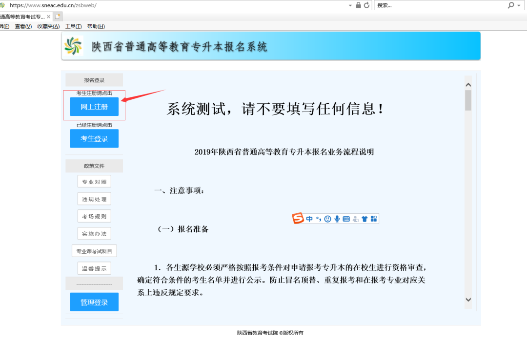 在浏览器地址栏输入网址https://www.sneac.edu.cn/zsbweb/打开专升本报名系统。