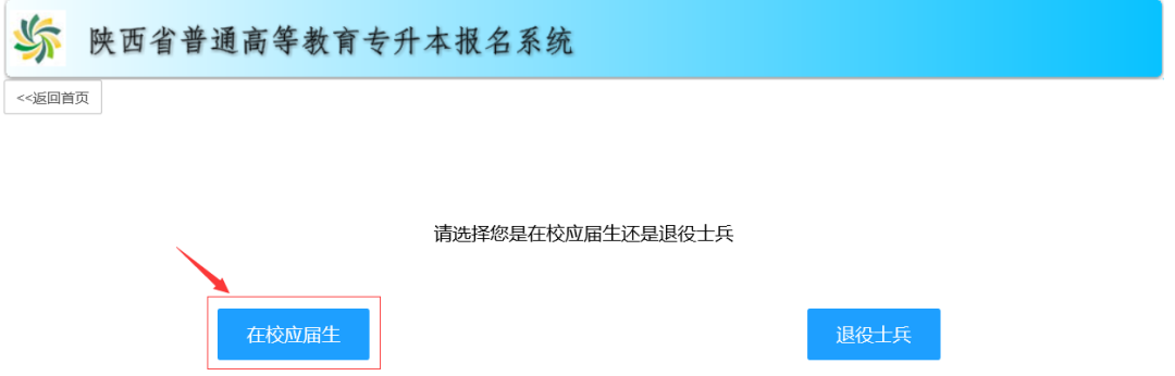 点击“网上注册”按钮,选择考生类型,如果是在校应届生,点击“在校应届生”按钮。
