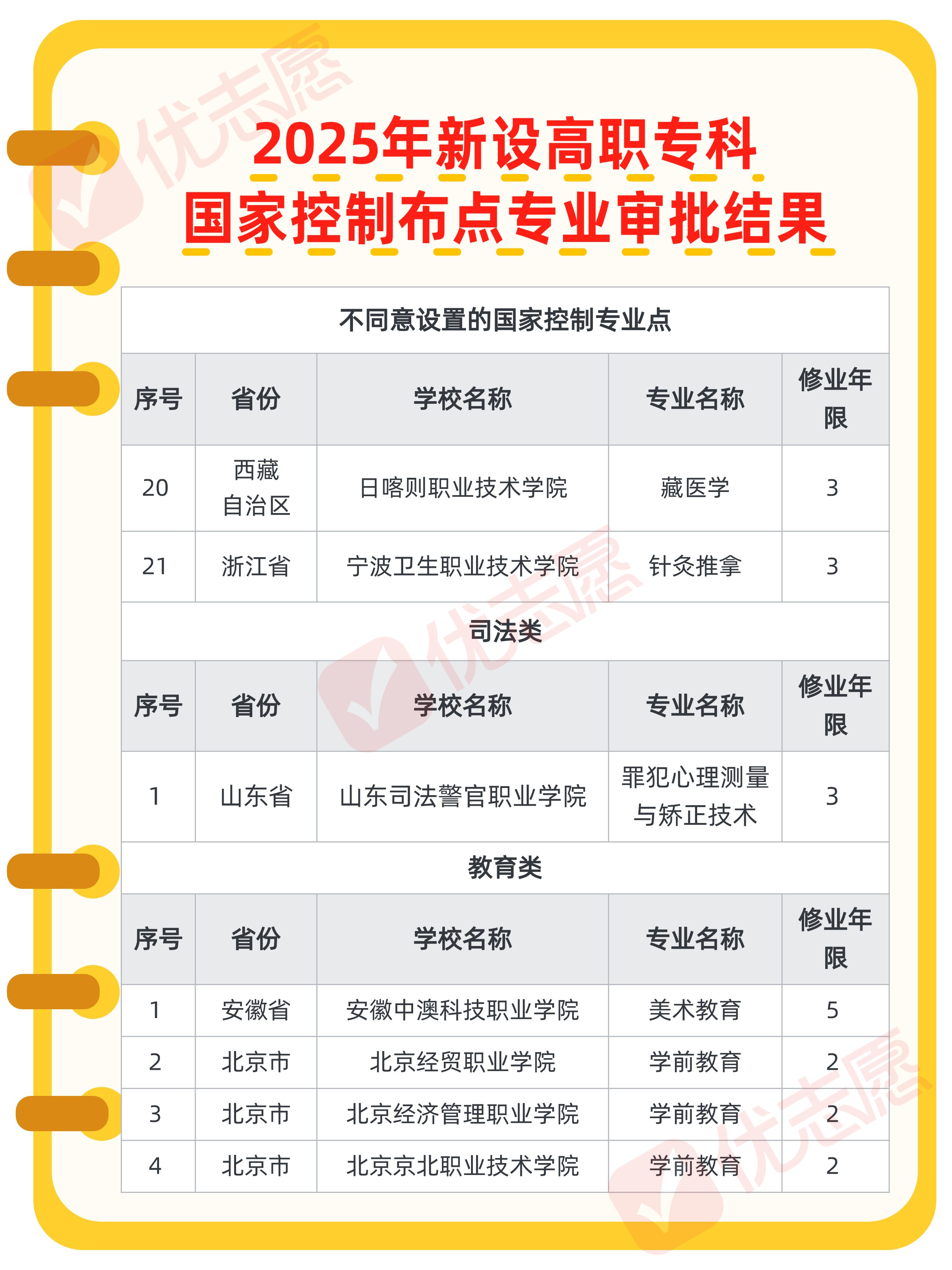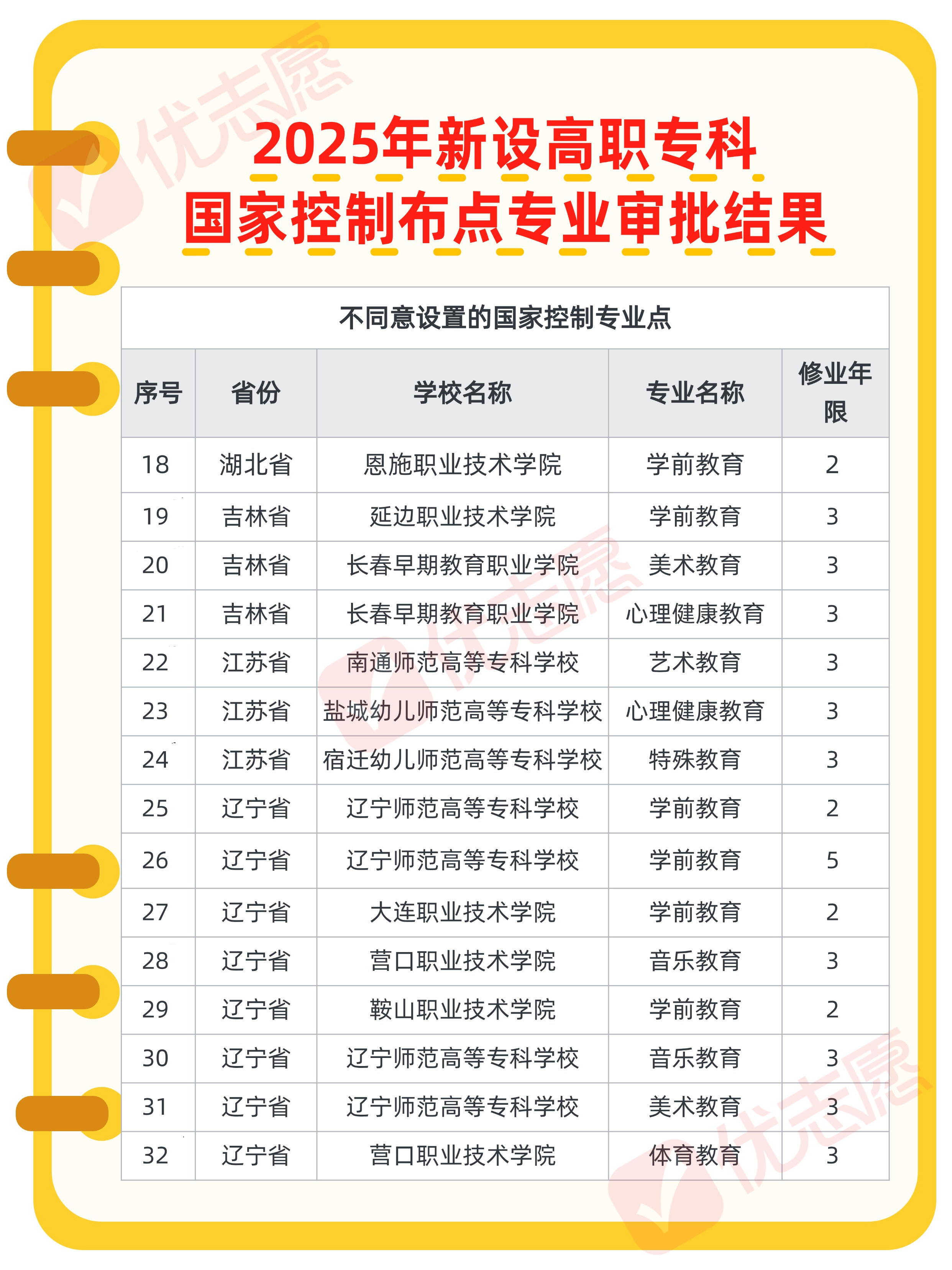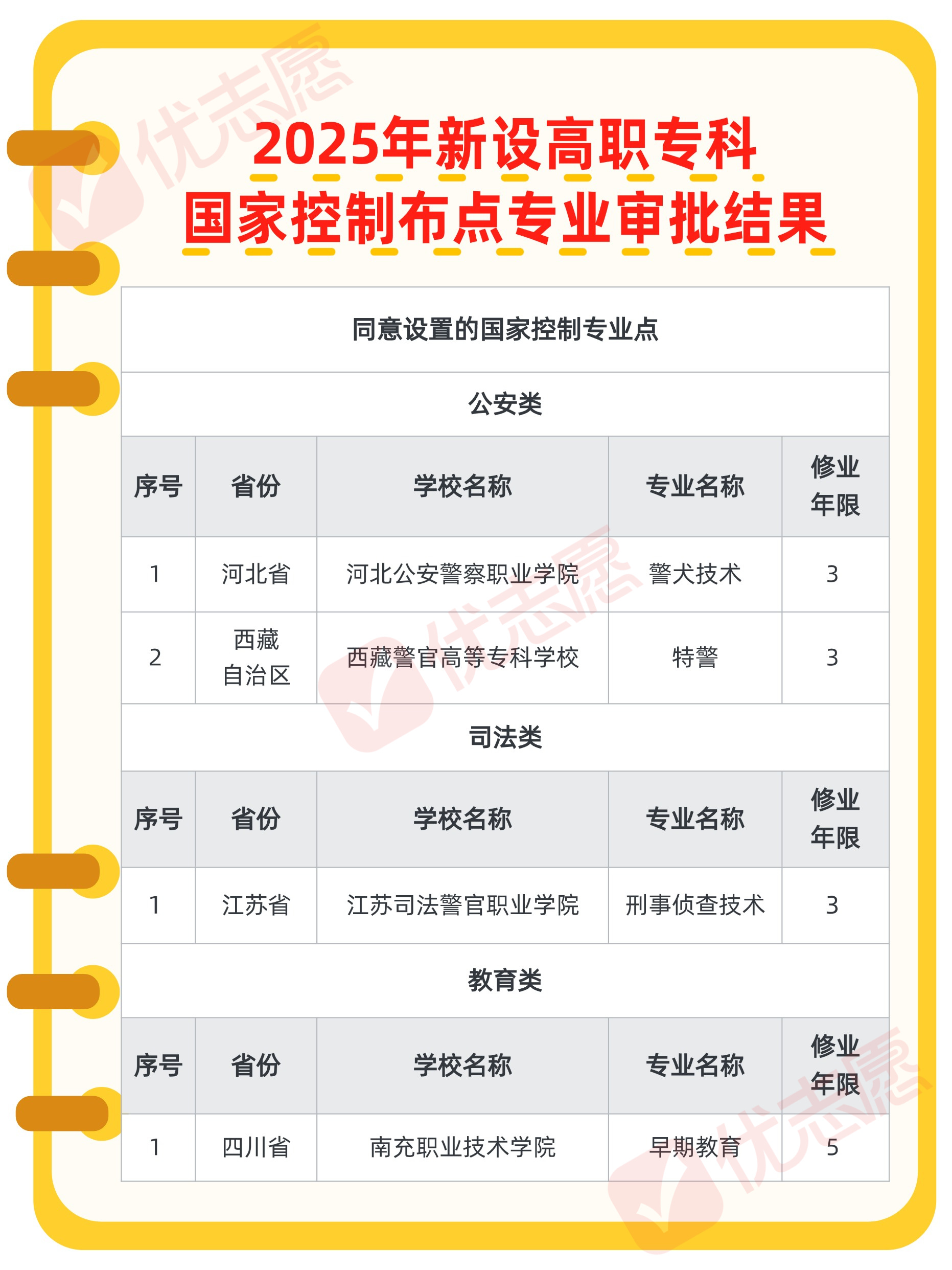 附图为新设高职专科国家控制布点专业审批结果,一起了解!
