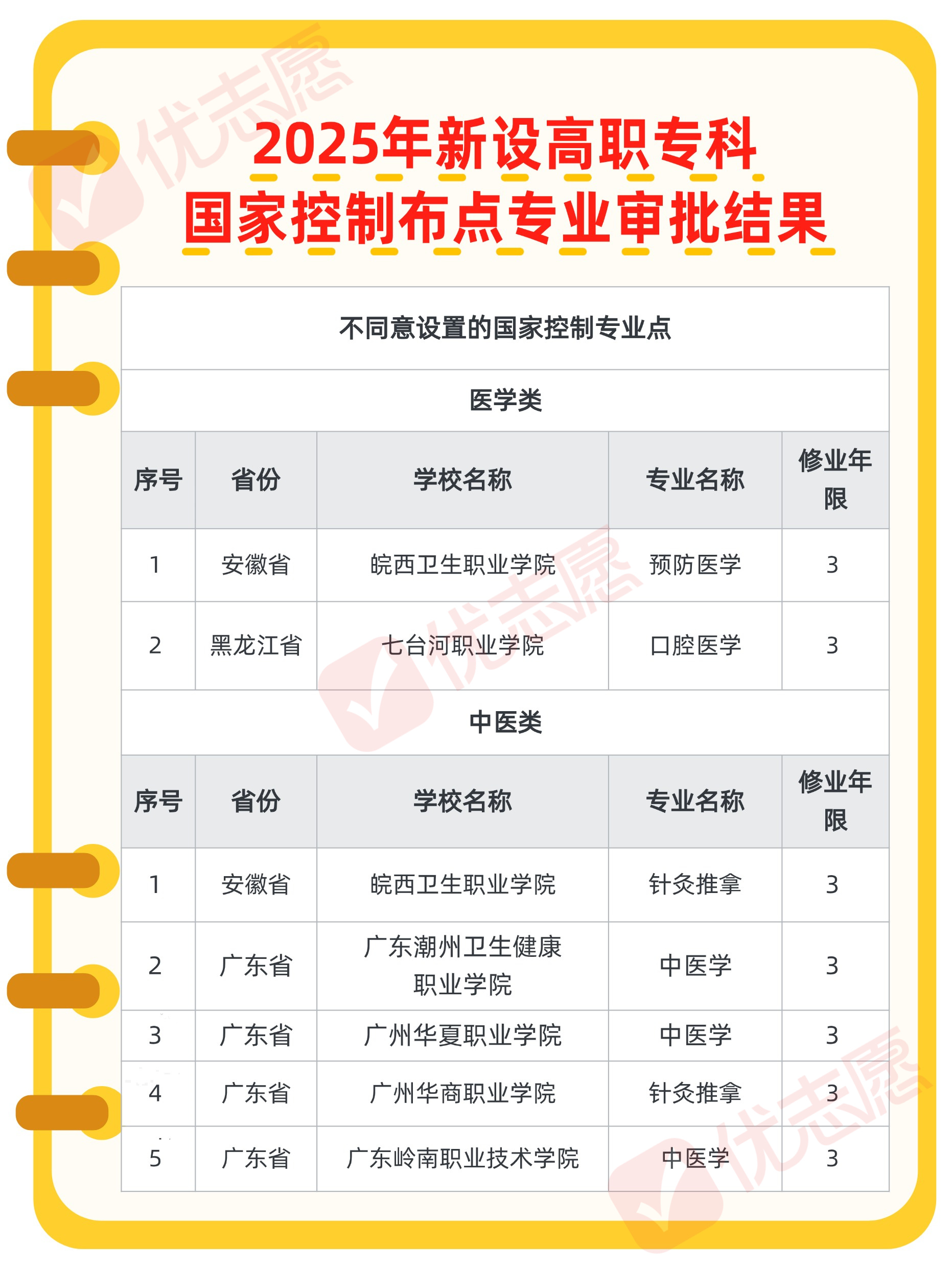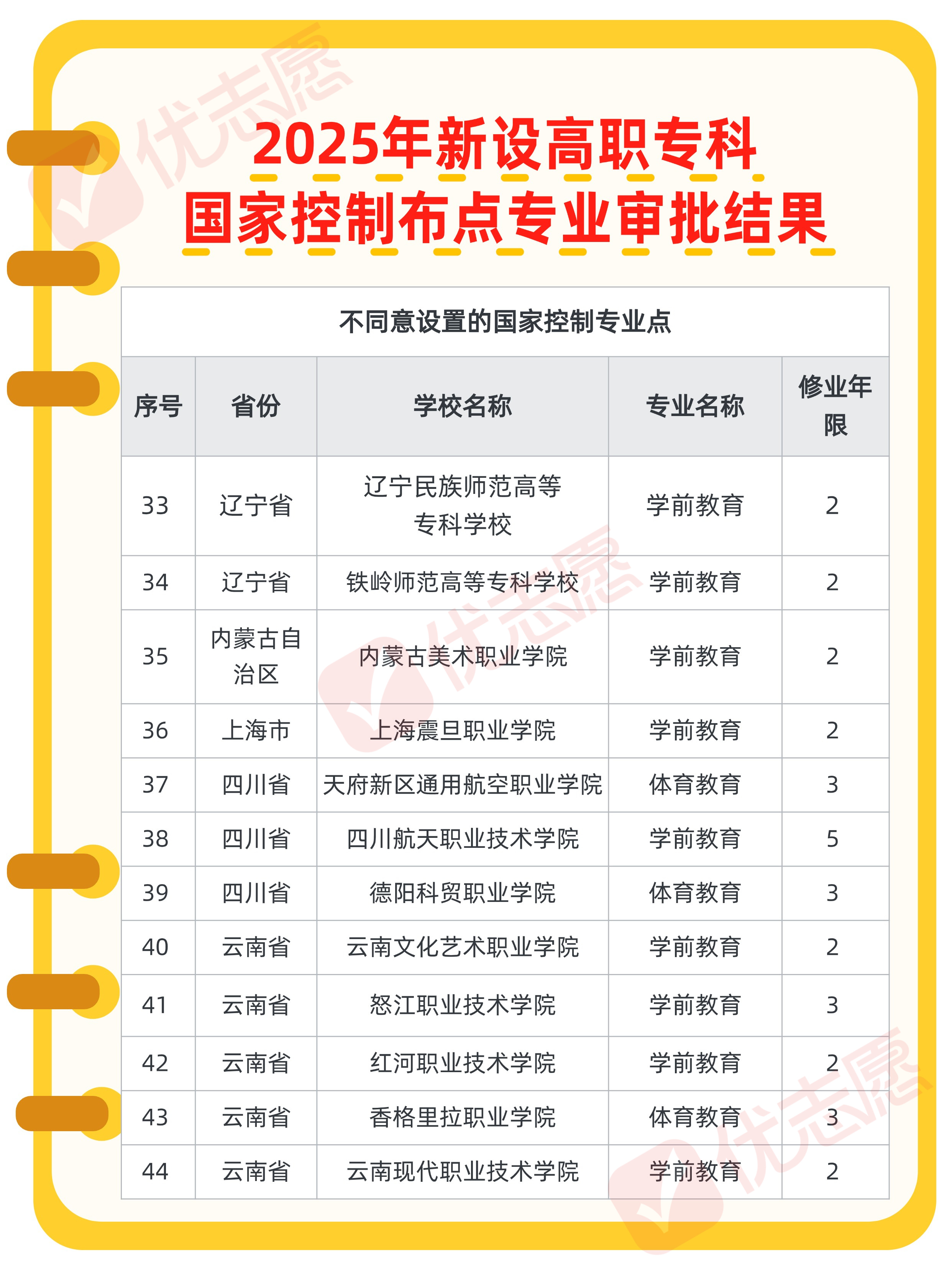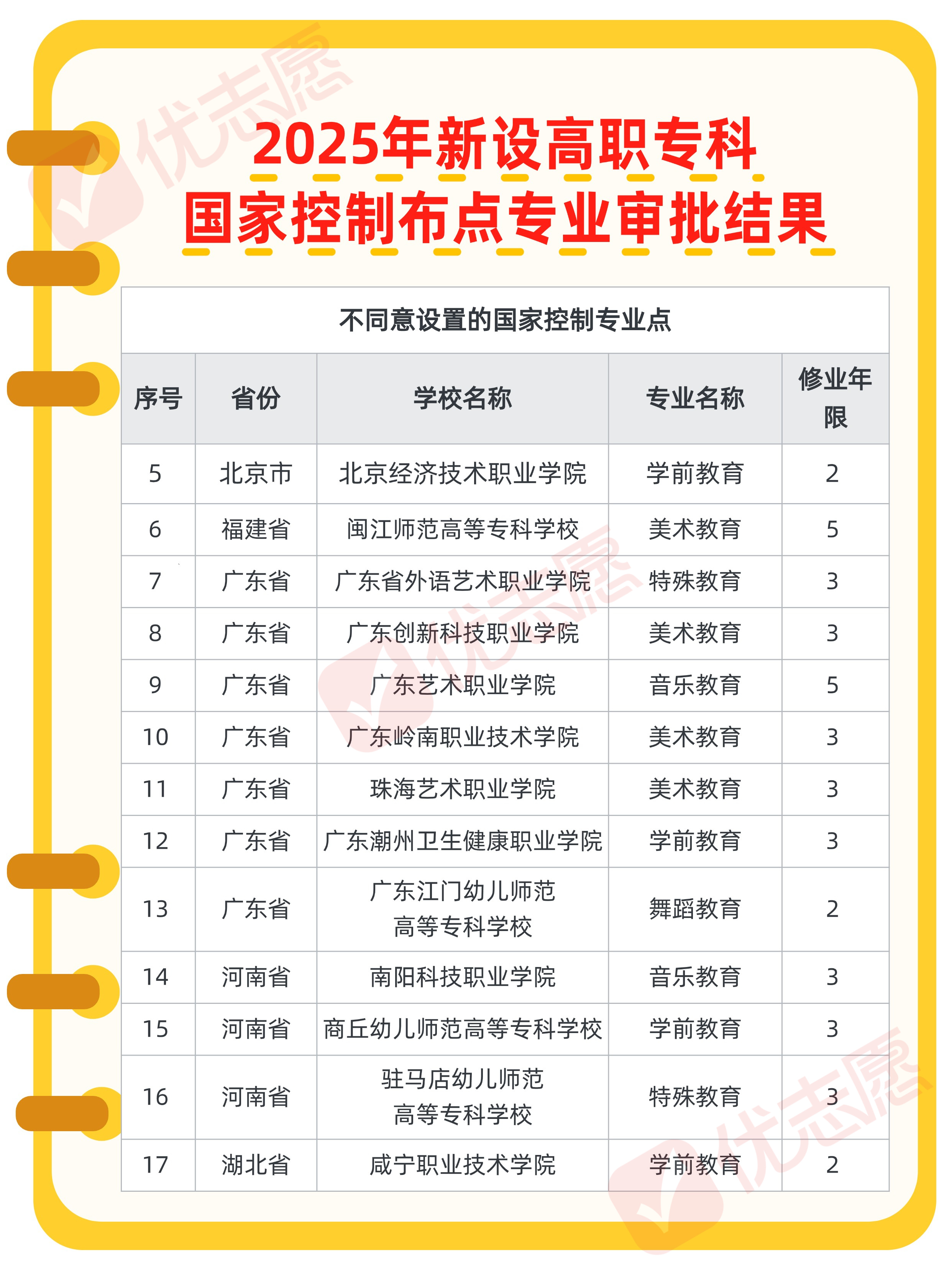 附图为新设高职专科国家控制布点专业审批结果,一起了解!