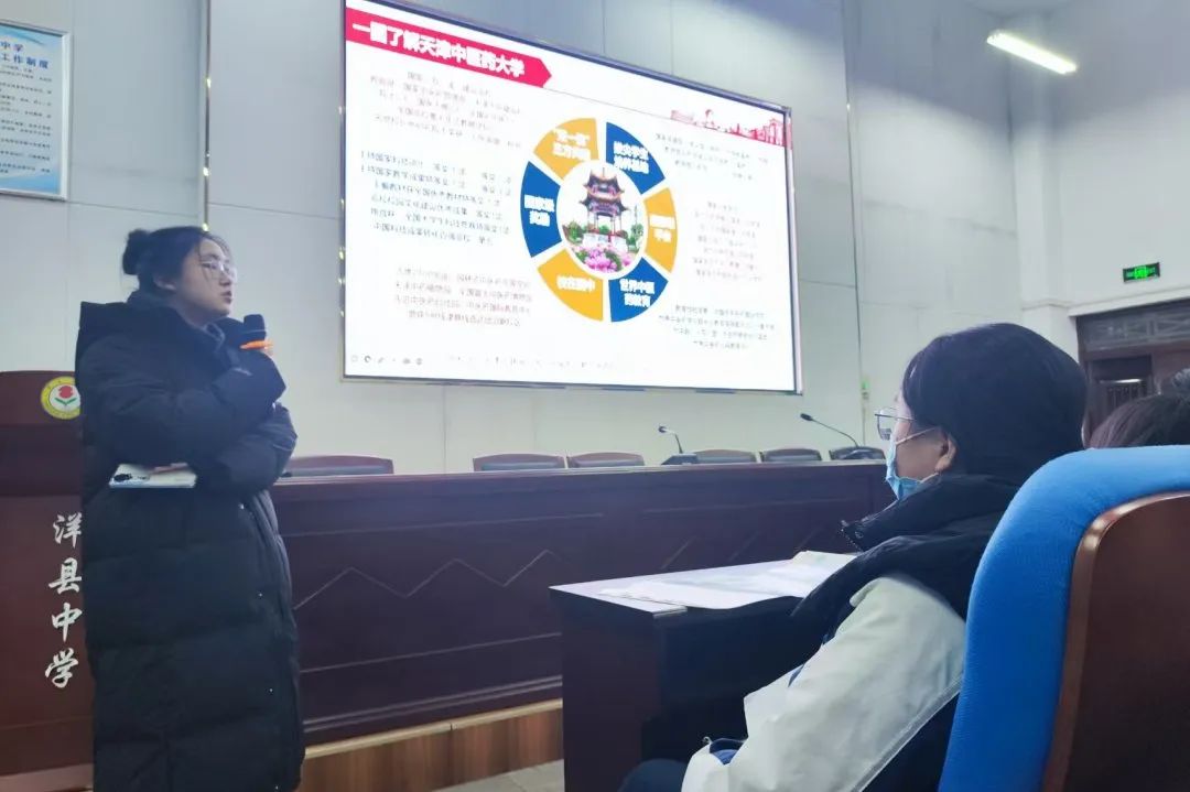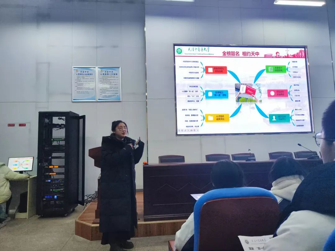 首先,我向同学们介绍了天津中医药大学,介绍了我们的历史底蕴,学科优势,校园生活以及未来发展前景,学弟学妹对天中充满了向往。