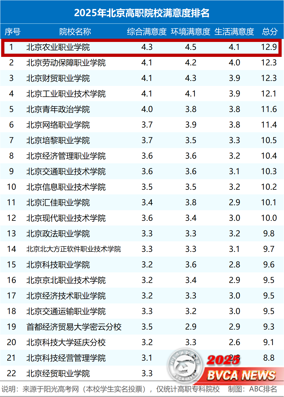 近日,根据阳光高考网公布的数据,我校在2025年中国高职(专科)院校满意度评价中综合满意度、环境满意度、生活满意度排名蝉联全市第一。院校满意度调查是各校毕业生及在校生从综合、环境及生活满意度三个方面对本校进行评分,对院校发展和考生升学择校具有重要参考价值。