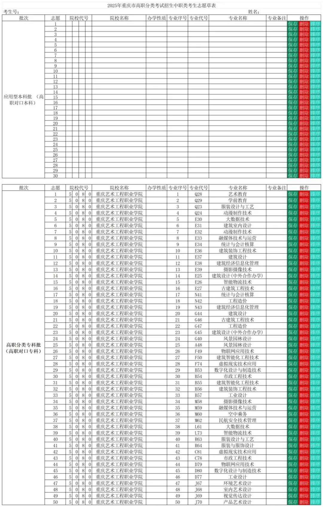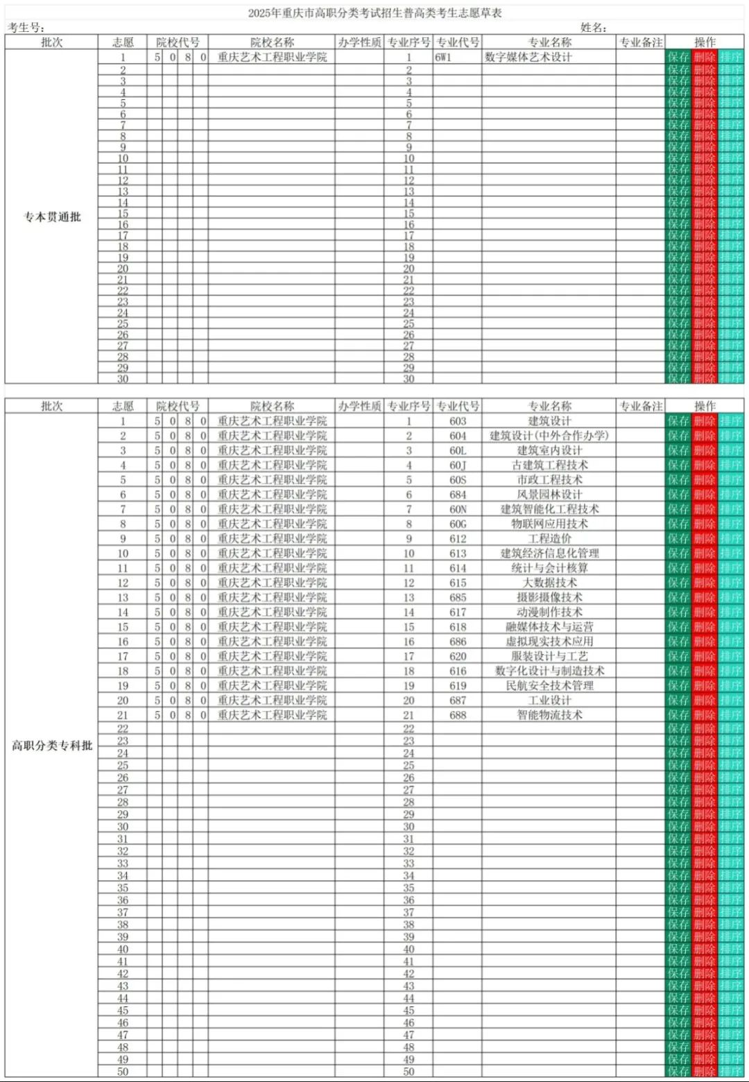 分类招生考试专业一览报考代码【5080】重庆艺术工程职业学院铸艺/精工/品能