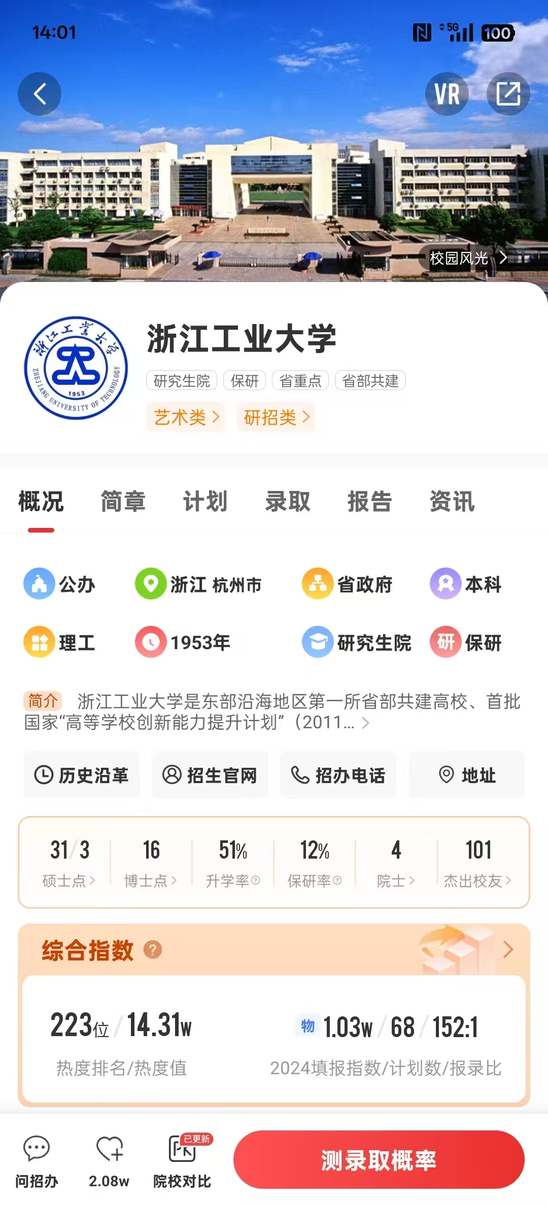 说起浙工大,很多同学可能不太了解,但实际上,这所学校可不简单,它在民间有个“小985”的外号。浙江工业大学坐落于浙江省杭州市,是东部沿海地区第一所省部共建高校、首批国家“2011 计划”(继“211”、“985”重点 高校建设之后,我国高等教育领域的第三个国家战略工程)协同创新中心牵头高校、浙江省首批重点建设高校。经过多年发展,浙工大更在浙江省属高校中创下多项“之最”——保送研究生比例高达12.45%,保送人数稳居省属高校首位,同时还是浙江省属高校中获得国家科学技术奖最多、科研经费最充裕的大学。这所低调的“全能学霸”,正以硬核实力展现着省属高校同样能培育顶尖学术的无限可能。