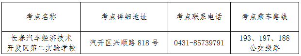 考点名称:长春汽车经济技术开发区第二实验学校。考点信息如下表: