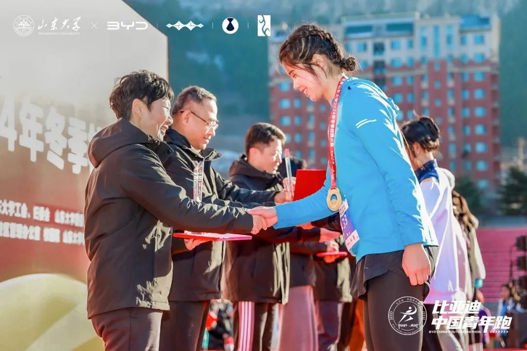 经过一番激烈的角逐,普通学生组、体院学生组和教工组的个人及团体获奖者们在掌声和欢呼声中登上领奖台。学校各部门及比亚迪的领导嘉宾为获奖者颁发奖杯和证书,每一位完赛同学也都收获了完赛奖牌等专属纪念礼品。