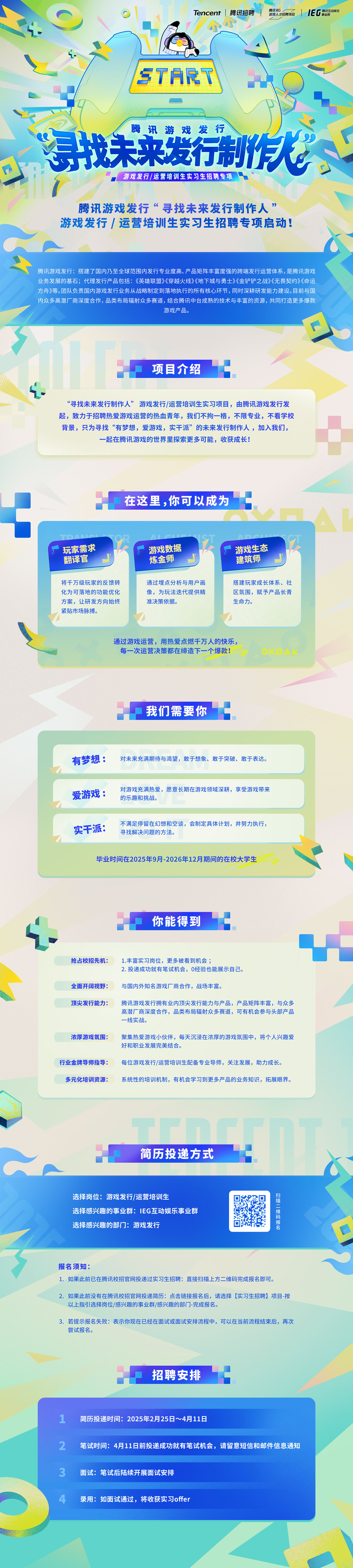 IEG游戏发行“寻找未来发行制作人”实习生招聘专项启动