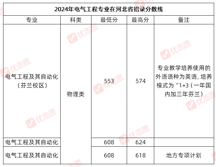 2024年,电气工程及其自动化专业在河北省设置3个招生方向,具体内容如下: