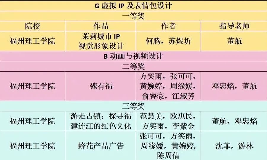 2023第十一届未来设计师·全国高校数字艺术设计大赛(NCDA)福建省赛区名单(福州理工学院)