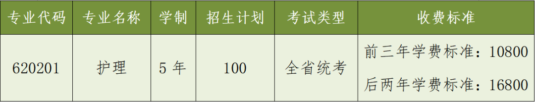 护理专业学费前三年10800元/生学年,后两年16800元/生学年;住宿费1800-2800元/生学年。