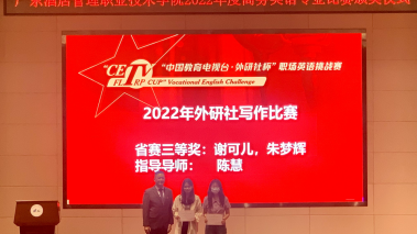 2022.11谢可儿、朱梦辉获得2022年外研社杯职场英语挑战赛写作大赛三等奖。