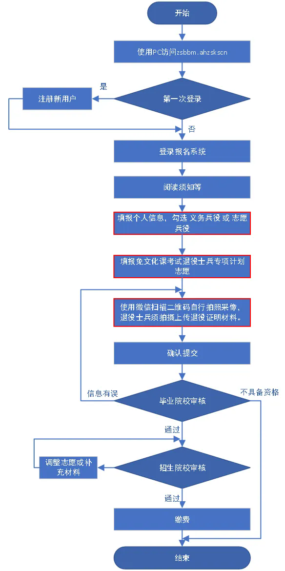 三、填报免文化课考试退役士兵专项计划志愿的考生报名流程