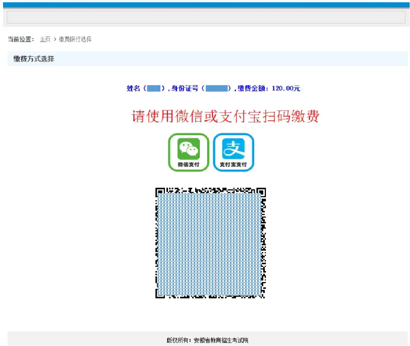 请使用微信或支付宝扫码缴费。稍等片刻,即可看到自己缴费成功。