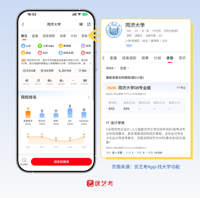 学科实力:第五轮学科评估设计学跃升至A+,QS艺术与设计学科连续5年亚洲第一(2023年全球第10),2025年易度排名全国第11名。