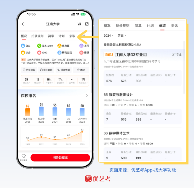 特色:数字媒体艺术、产品设计等专业突出,2024年全面取消校考,采用省统考成绩招生。2025年易度排名全国第62名。