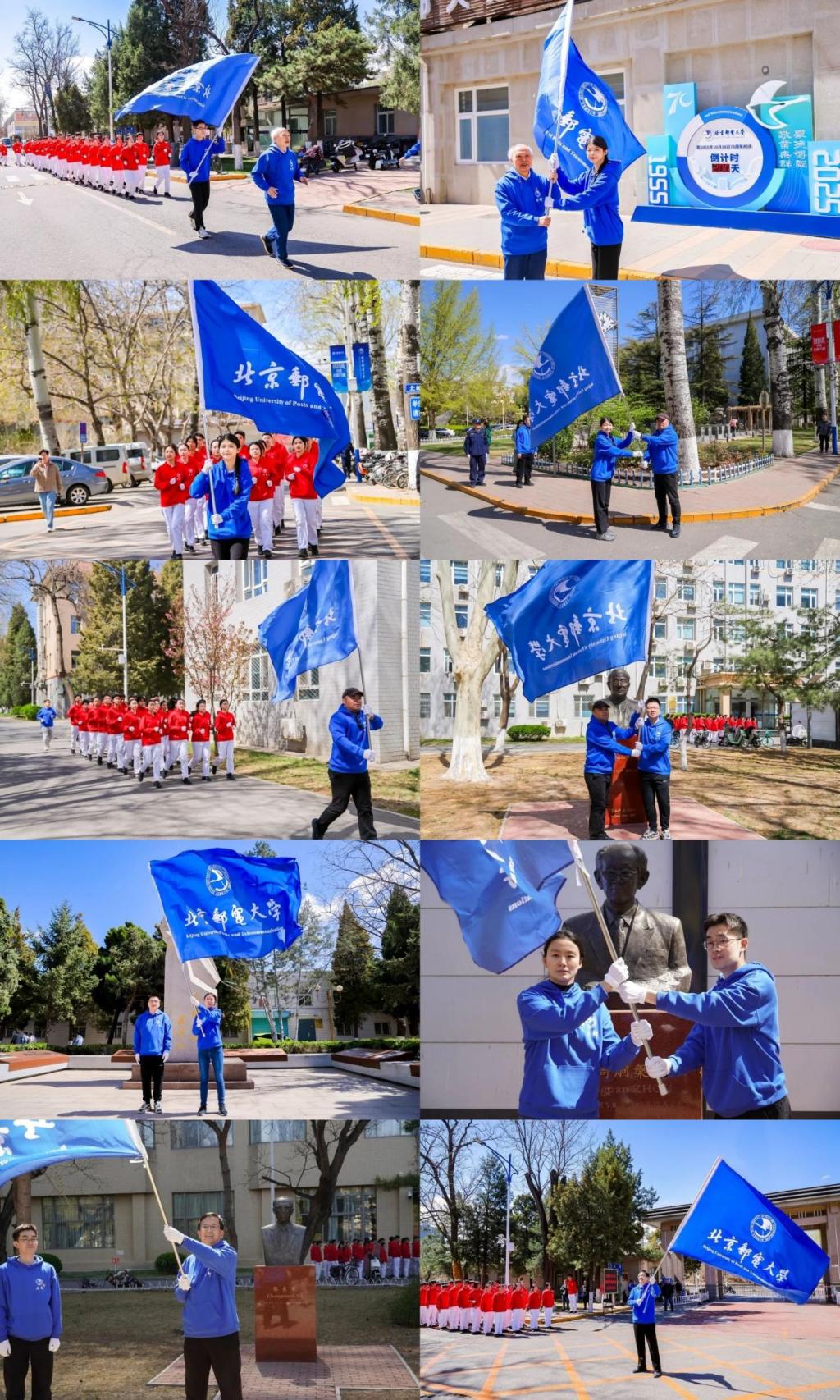 七位传旗手带领师生跑团穿越玉兰盛放的时光广场、驻足致敬李白烈士像前致敬、集结于“三老”铜像前,用足迹串联起从有线通信到6G时代的科技征程,感悟奋斗精神,见证薪火相传的使命担当。