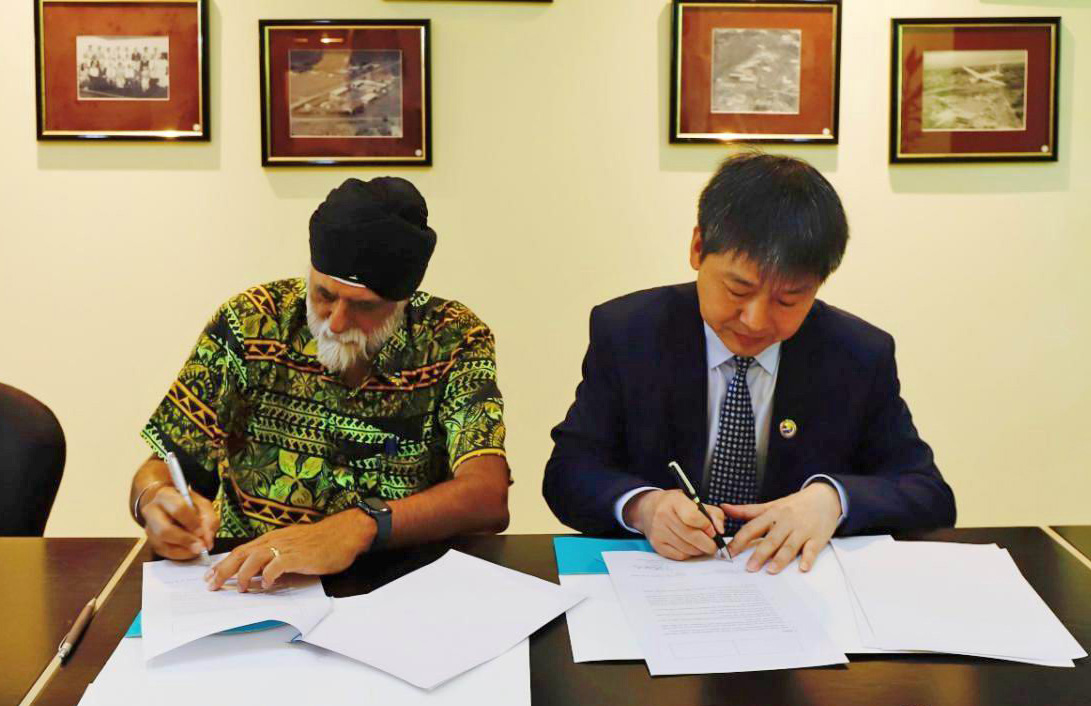 在南太平洋大学,南太大学校长帕尔·阿鲁瓦利亚教授在座谈中高度评价了南太孔院在服务外方主体机构和跨文化交流方面的贡献,并希望依托北邮技术优势,推动信息科技领域人才的联合培养及科研团队的交流互访。双方就成建制输送南太地区留学生达成合作共识,并签署了《北京邮电大学与南太平洋大学共建优秀生源基地框架协议》。