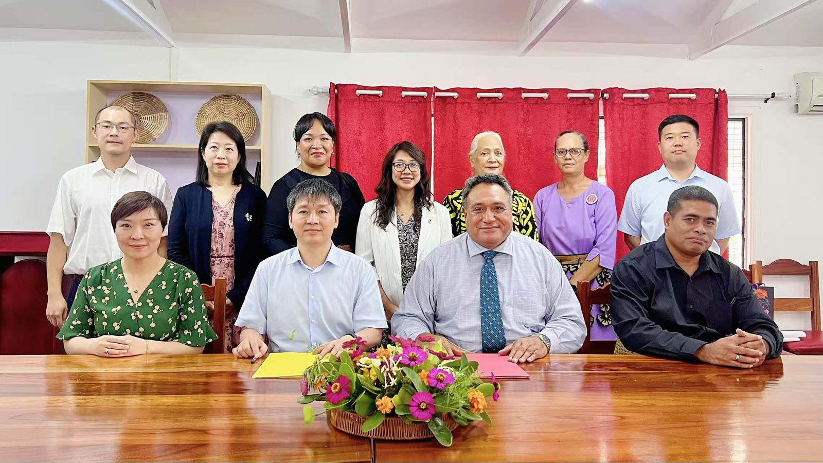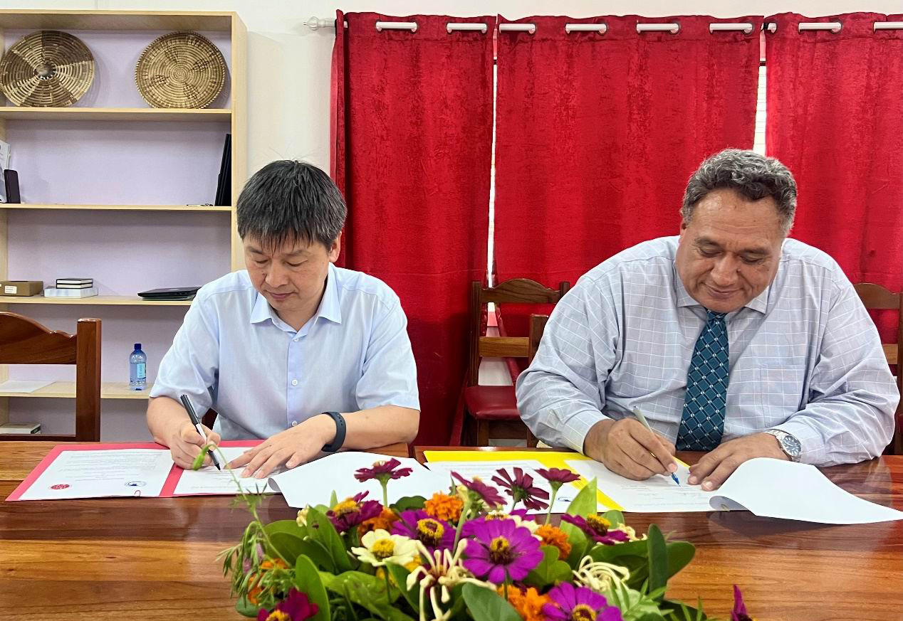 随后,代表团访问了汤加国立大学,与校长朱利奥·庞加博士及语言艺术学院、新闻传媒学院座谈,围绕国际中文教育、信息科学技术方面可以展开的合作进行了深入交流,并签署了校际合作备忘录。