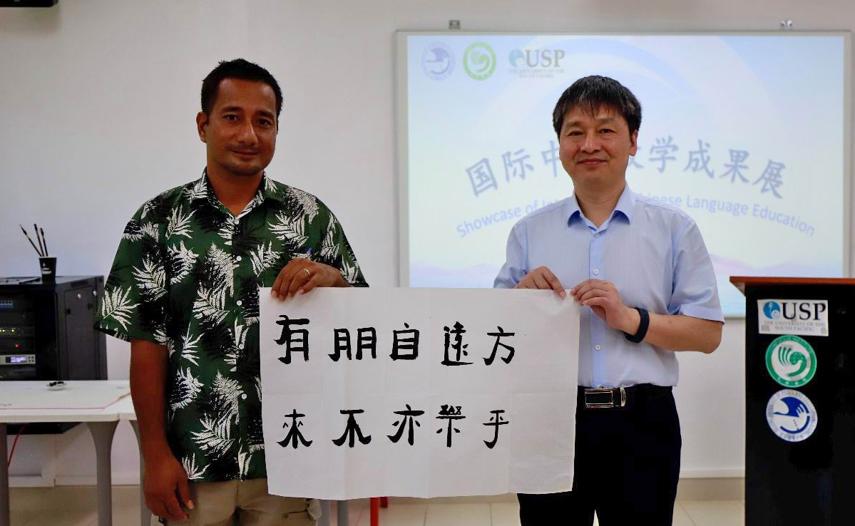 同日,苏森一行出席南太孔院国际中文日暨教学成果展示活动,活动内容涵盖中文演讲、书画展示、中文歌曲表演及太极拳体验,充分展现了本土中文学习者的卓越才华和中华文化的独特魅力。