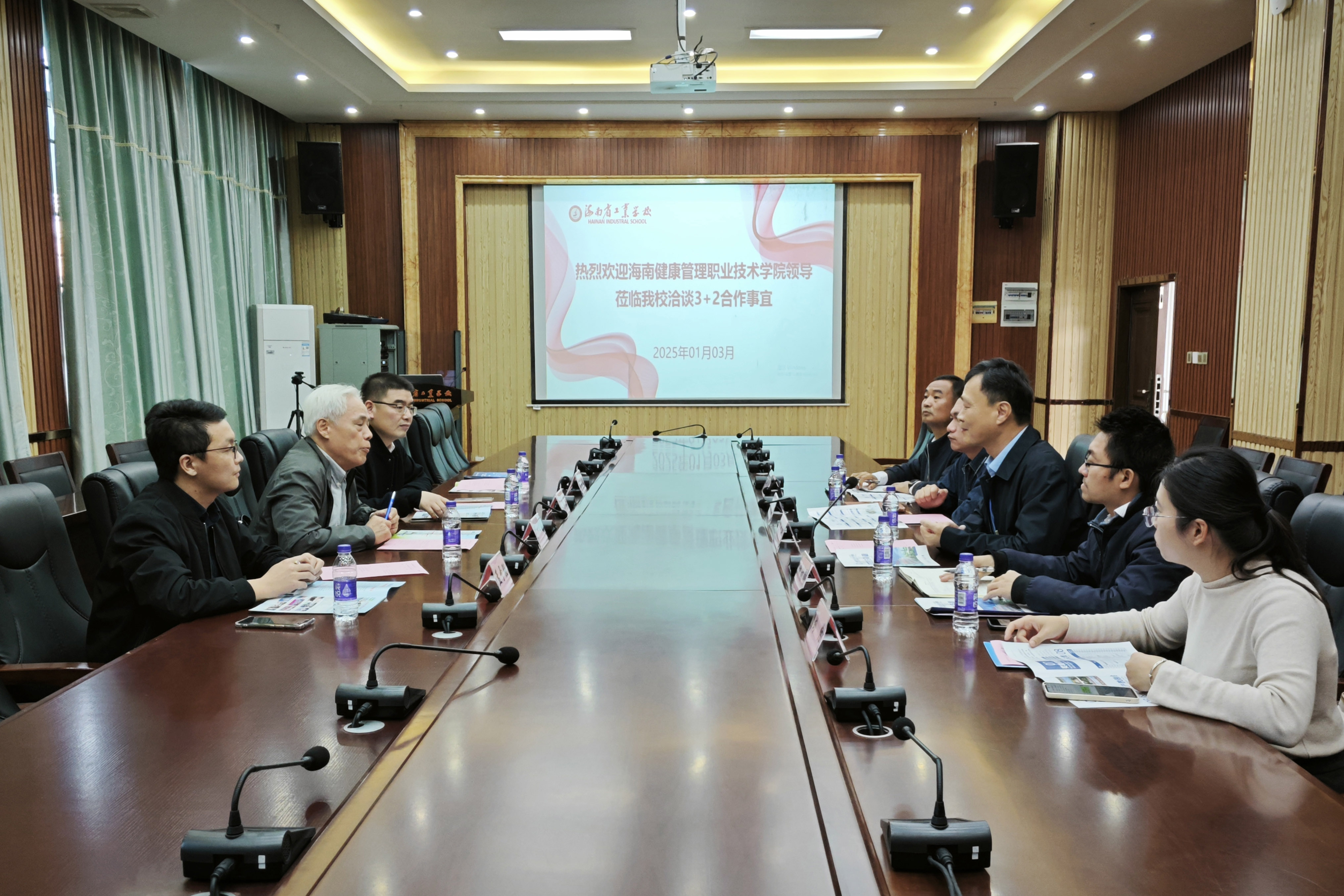 在与海南省工业学校的座谈会上,双方就“3+2”分段贯通培养项目合作进行了深入交流,均表达了对合作的期望,并希望共同推进人才培养衔接,提升办学质量。