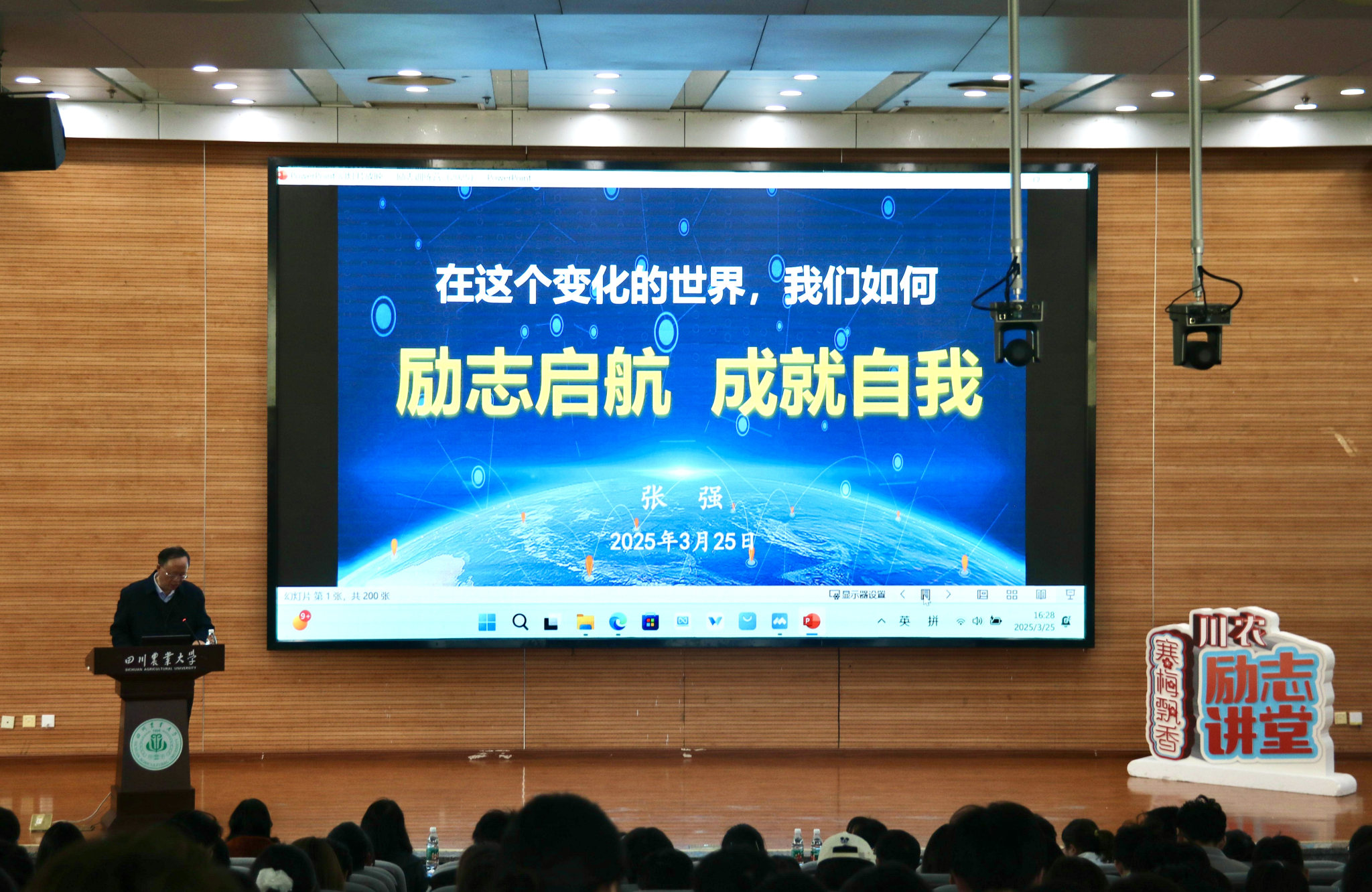 张强以《励志启航 成就自我》为题,从生活状态、经济发展、世界格局及大学生群体等四个维度的深刻变化切入,通过详实数据和生动案例,深入浅出分析了人工智能时代的社会变革和当前国际形势。他强调,面对快速变化的外部环境,同学们要学会正确认识自我、把握当下,克服成长过程中的困难与挑战。他鼓励同学们在学习和生活上学会用“加减乘除”成长法则,科学规划大学生活、积极拓展发展空间、勇敢迎接机遇挑战,创造属于自己的精彩人生。