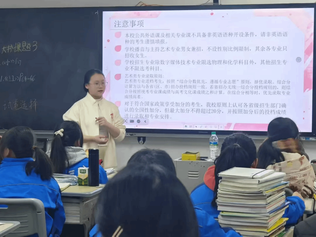 宣讲当天,我在学校发的卫衣外面套了一件黑色外衣,特地把头发全都折到耳后并挽了起来,希望能够在学弟学妹们面前表现得稳重得体,不给学校丢脸。宣讲时,我自信大方地向学弟学妹们展示中华女子学院,并积极回答他们向我提出的问题。然后,我给他们分享了我的高三心路历程,给予他们前进的力量。当天,我从早上到下午最后一节课,穿梭于高三教学楼的五个班级,认真完成我的宣讲任务。