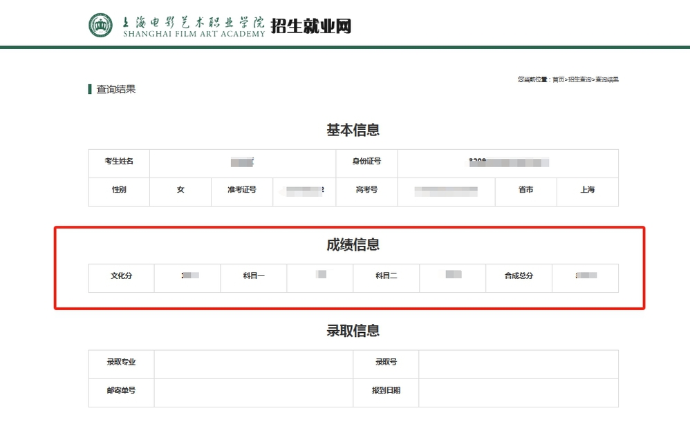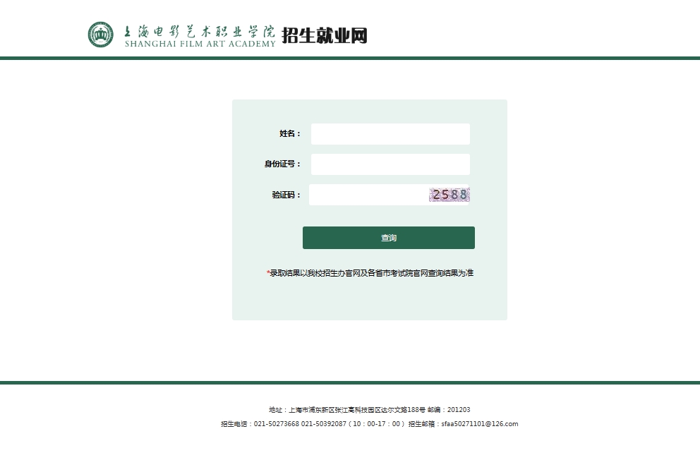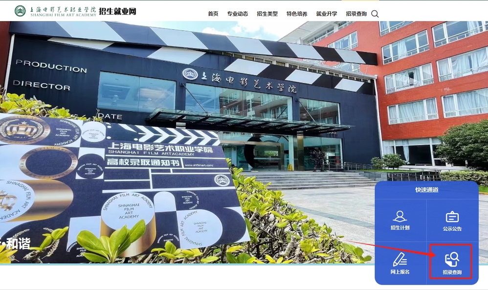 进入网站招生就业网 (shfilmart.com),点击【招录查询】,