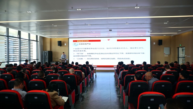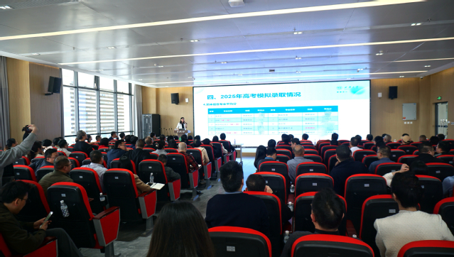 会上,招生与就业处副处长黄潇详细解读了四川省2025年新高考改革政策及模拟录取数据。数据显示:新高考模式下,招生进入“卖方市场”,考生选择权扩大导致招生竞争从“学校本位”转向“专业为王”,专业失去学校统一调档线“托底”,考生对专业选择更加理性,专业间生源质量分化显著。同时,招生与就业处副处长李绍军通报了全校、各学院及各专业2025届毕业生就业进度情况,并就近期毕业生就业重点工作进行安排和部署。