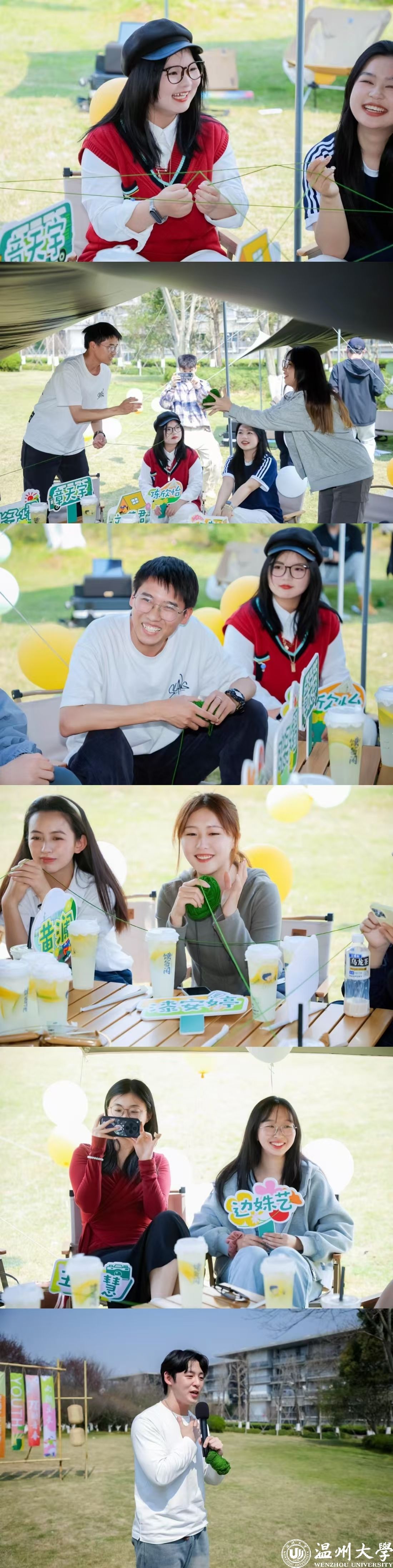 在“π的N次方”抛毛线球游戏环节,师生们围坐成圈,通过趣味问答、团队协作等方式,将圆周率蕴含的无限可能与青春梦想巧妙融合。现场师生通过游戏分享自己与温大的故事与链接,有同学娓娓道来参与志愿活动的暖心故事;有同学诙谐讲述自己体育训练中发生的糗事。“我们虽然来自不同学院、拥有不同的专业背景,但当毛线交织成错综复杂的网,我们的青春故事也变得紧紧相连!”学生代表刘芷君同学在游戏中发出感慨。