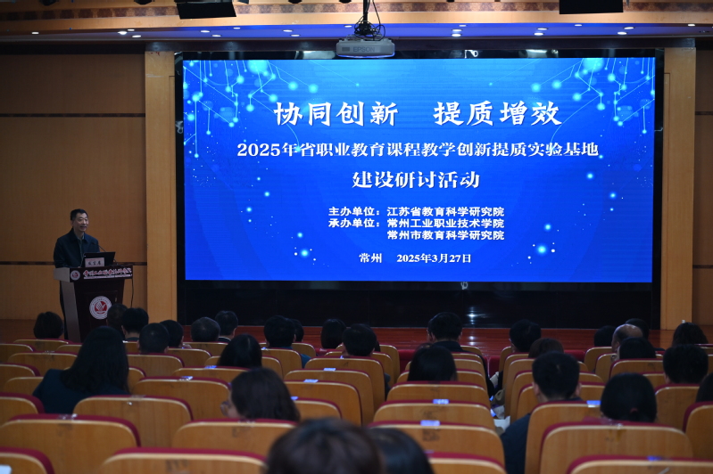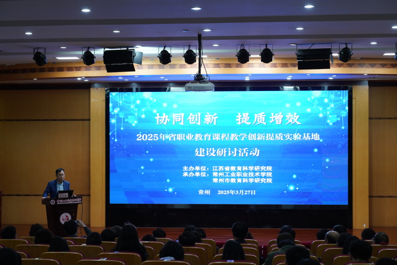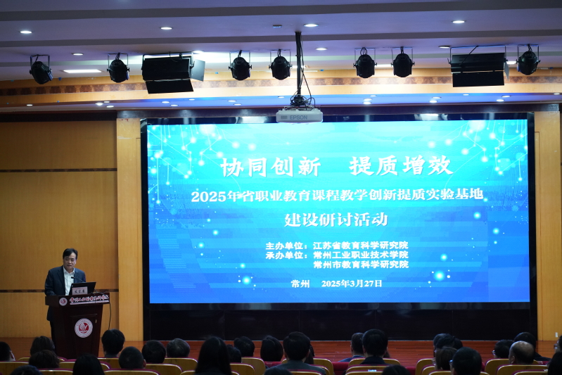 3月27日,2025年江苏省职业教育课程教学创新提质实验基地建设研讨活动在我校举行。江苏省教育科学研究院副院长张晓东,江苏省教育科学研究院职业教育与终身教育研究所所长陈向阳、副所长夏英,常州市教育科学研究院副院长杨永年,我校校长杨劲松出席研讨活动。各设区市职教教研机构负责人、高职院校教务处负责同志、28个省实验基地负责人等百余名代表参加活动。