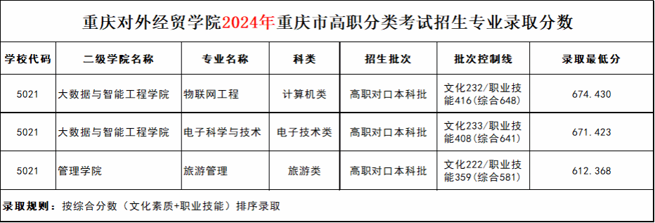 重庆对外经贸学院2024年重庆市高职分类考试招生专业录取分数