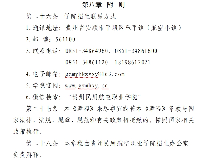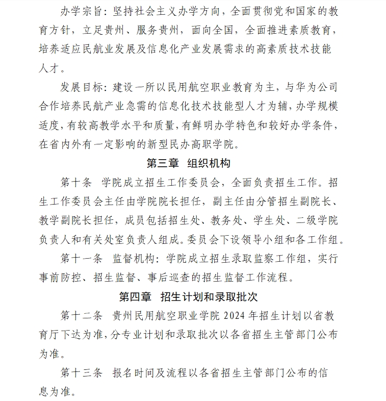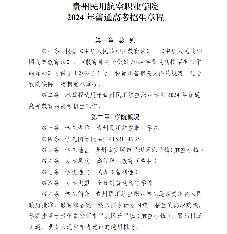 贵州民用航空职业学院 2024年普通高考招生章程