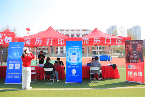 走进会场,“智慧就业服务专区”格外引人注目,AI求职、简历诊断和打印等服务一应俱全。刷脸认证、选择职位、报名岗位、确认信息……求职者可以在“1号求职机”上刷脸签到、实现简历快速投递,全程不到1分钟即可完成“刷脸求职”。“登录平台、选择简历模板、填写简历内容、AI智能诊断、修改完善简历、导出简历”一旁的才立方“简历优化实验室”也吸引了不少同学的关注,只需简单六步,便可使简历焕新升级。“免费AI修改简历并同步至毕业生信息网,让找工作变得快捷、高效。”现场同样推出个性化简历制作的还有“就业桥”的“神笔简历”服务。
