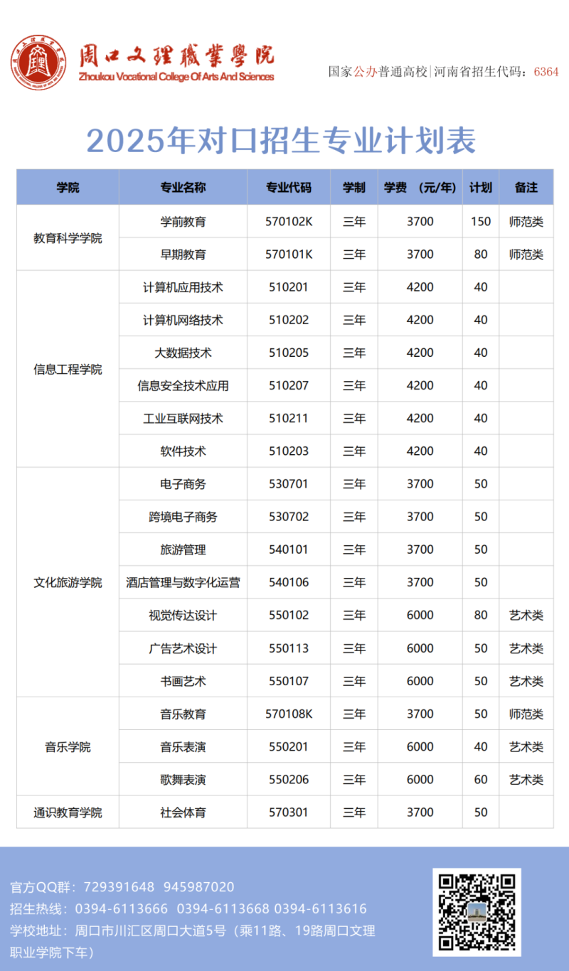 公办院校:周口文理职业学院是经河南省政府批准成立,教育部备案的公办专科层次全日制普通高校。