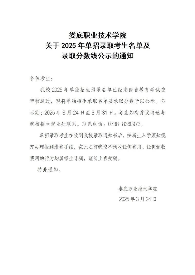 文件附件:点击下载附件:娄底职院2025年单独招生录取名单.pdf