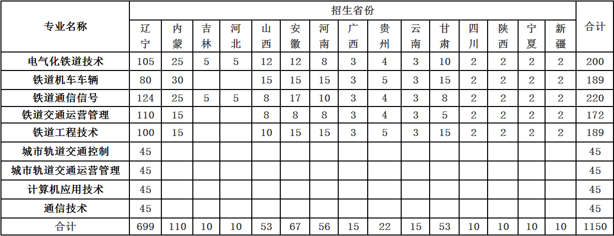 辽宁铁道职业技术学院2011年招生计划