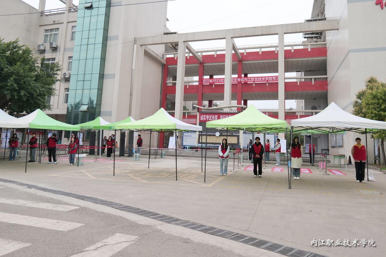 本次考试内江职业技术学院考点共接纳9000余名考生参考,其中内江职业技术学院考区3200余人、内江师范学院考区5800余人。学校严格落实主体责任,主要领导靠前把关、协调、督查,成立考试工作领导小组和工作专班,多次召开单招考试工作布置会,通过官网、微信公众号提前向考生公布考试注意事项,为考生营造安全、舒适的考试环境。考前一天,学校组织召开考务培训会,对考场设置、考试流程、监考职责等多方面进行全面而细致的培训,确保考试顺利进行。