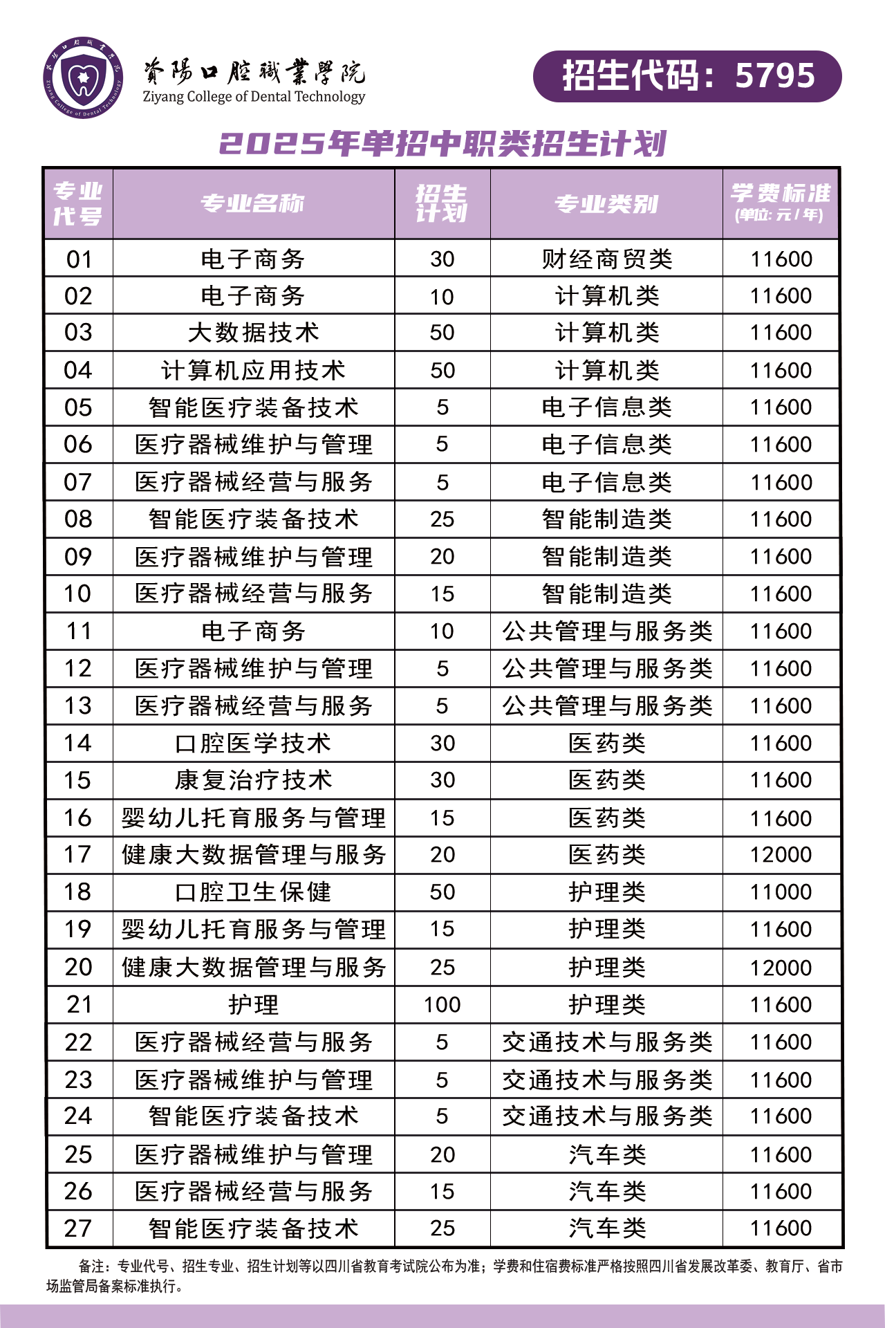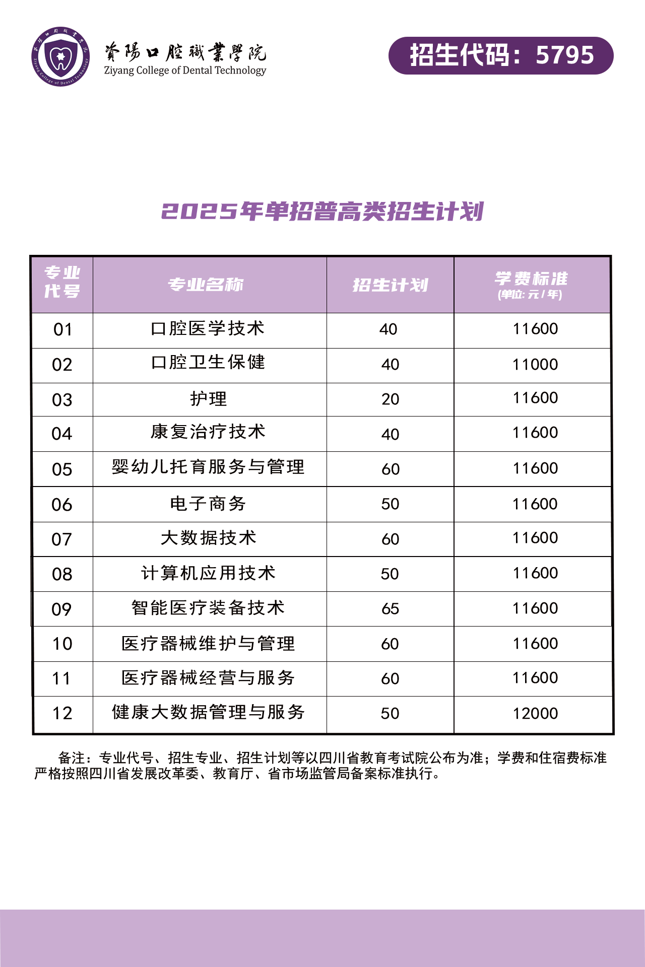 资阳口腔职业学院2025年单招招生计划